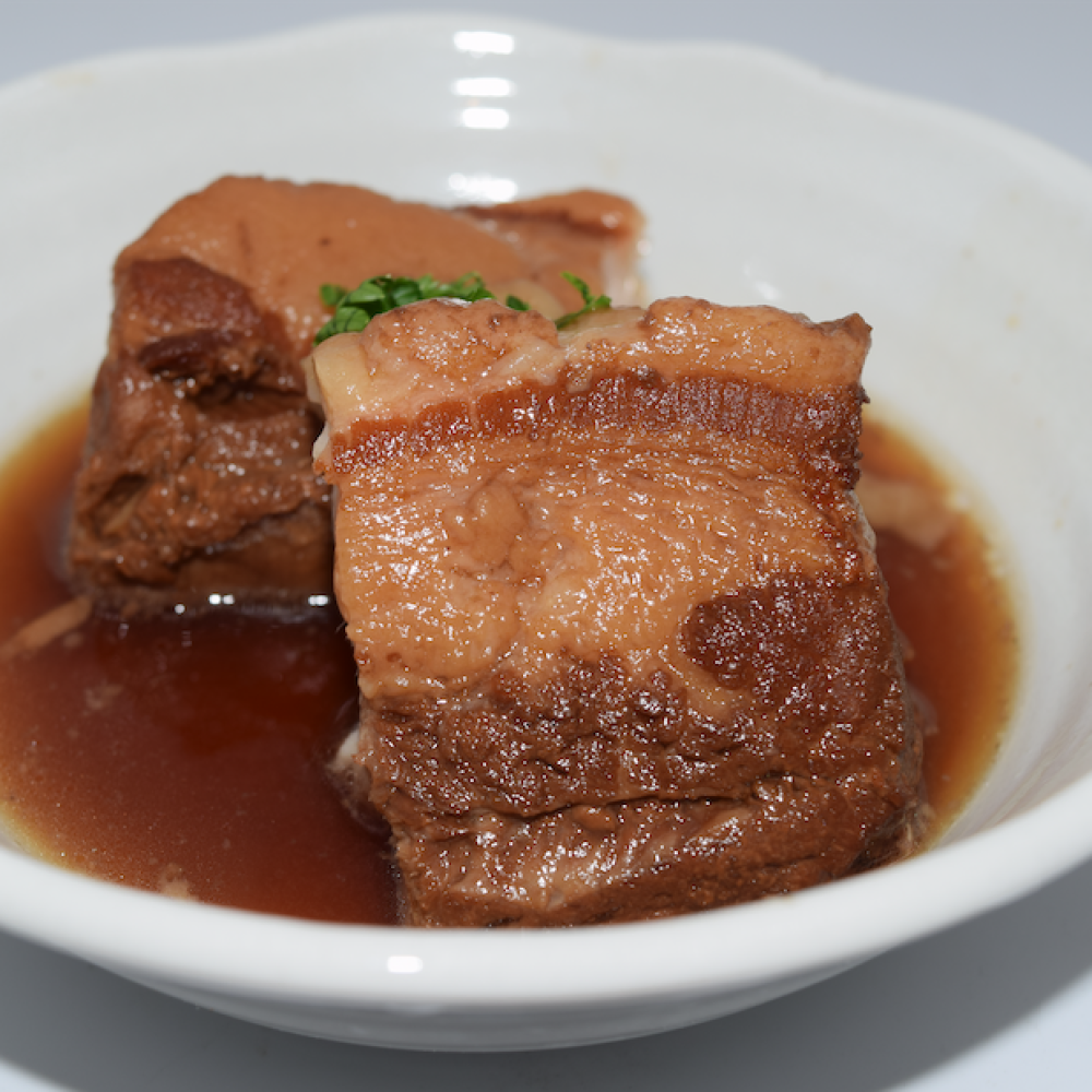 素材に負荷はかけないように圧力鍋は使わずに丁寧にゆっくり5時間煮込んだ「絶品やわらか角煮」です。
